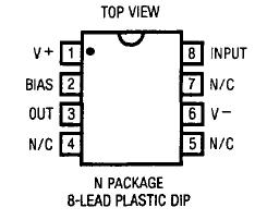 Features: (1)20MHz bandwidth. (2)75V/us slew rate. (3)Drives +/-10V into 75Ω. (4)5mA quiescent current. (5)Drives capacitive loads >1uF. (6)Current and thermal limit. (7)Operates from single supply >=4.5V. (8)Very low distortion operation.